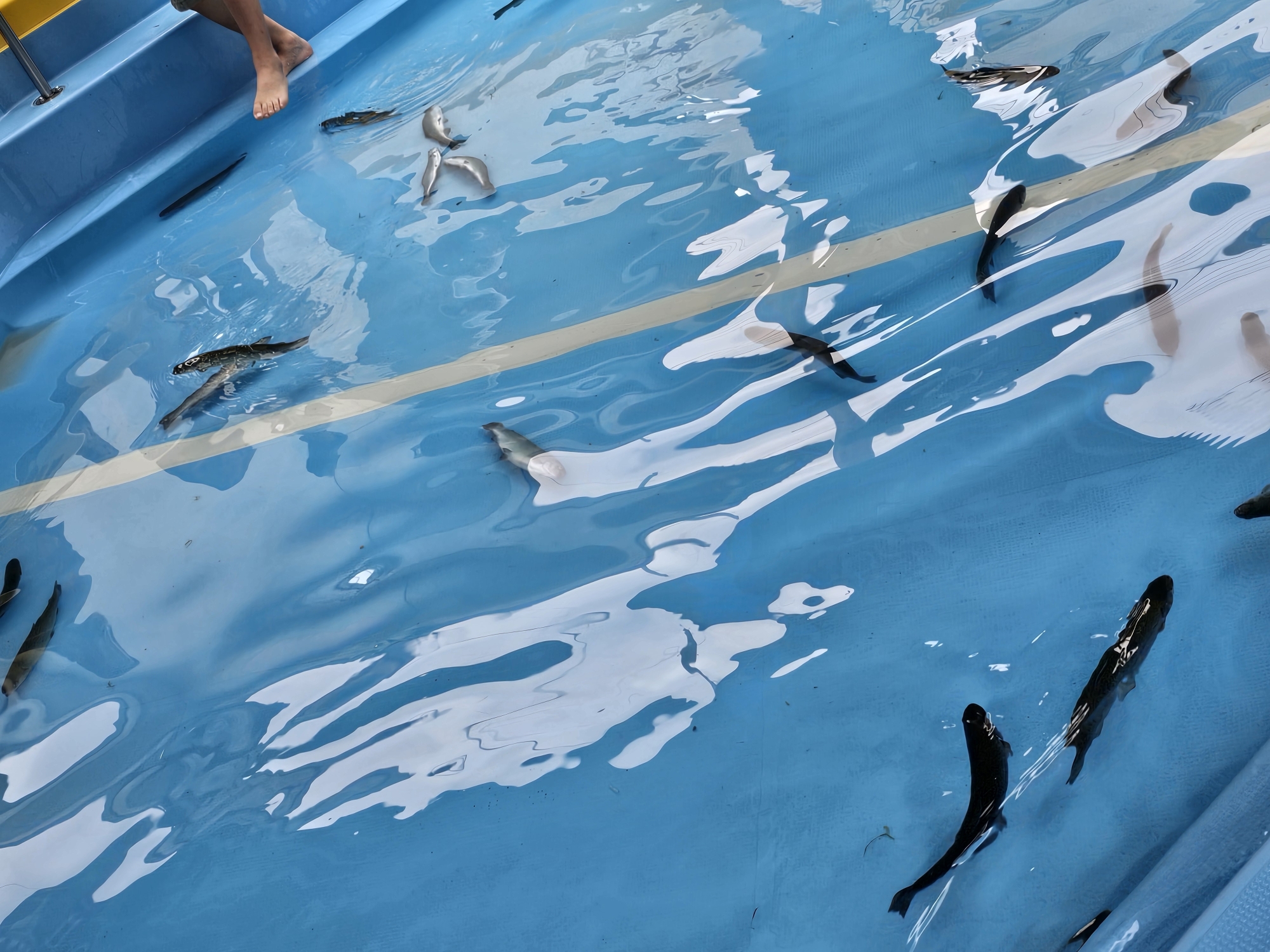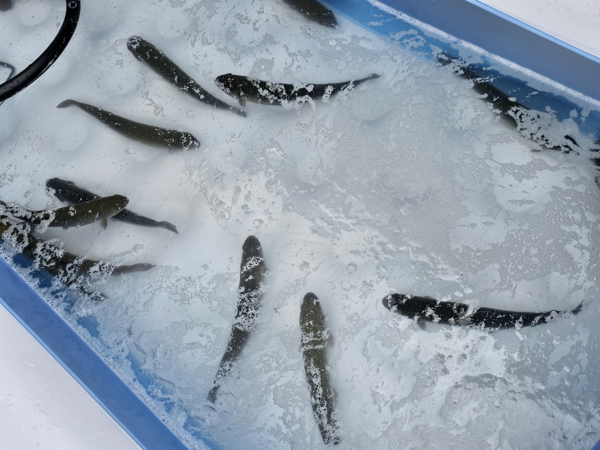 朝からプールに運ばれてくるマスを楽しみに待っていました。