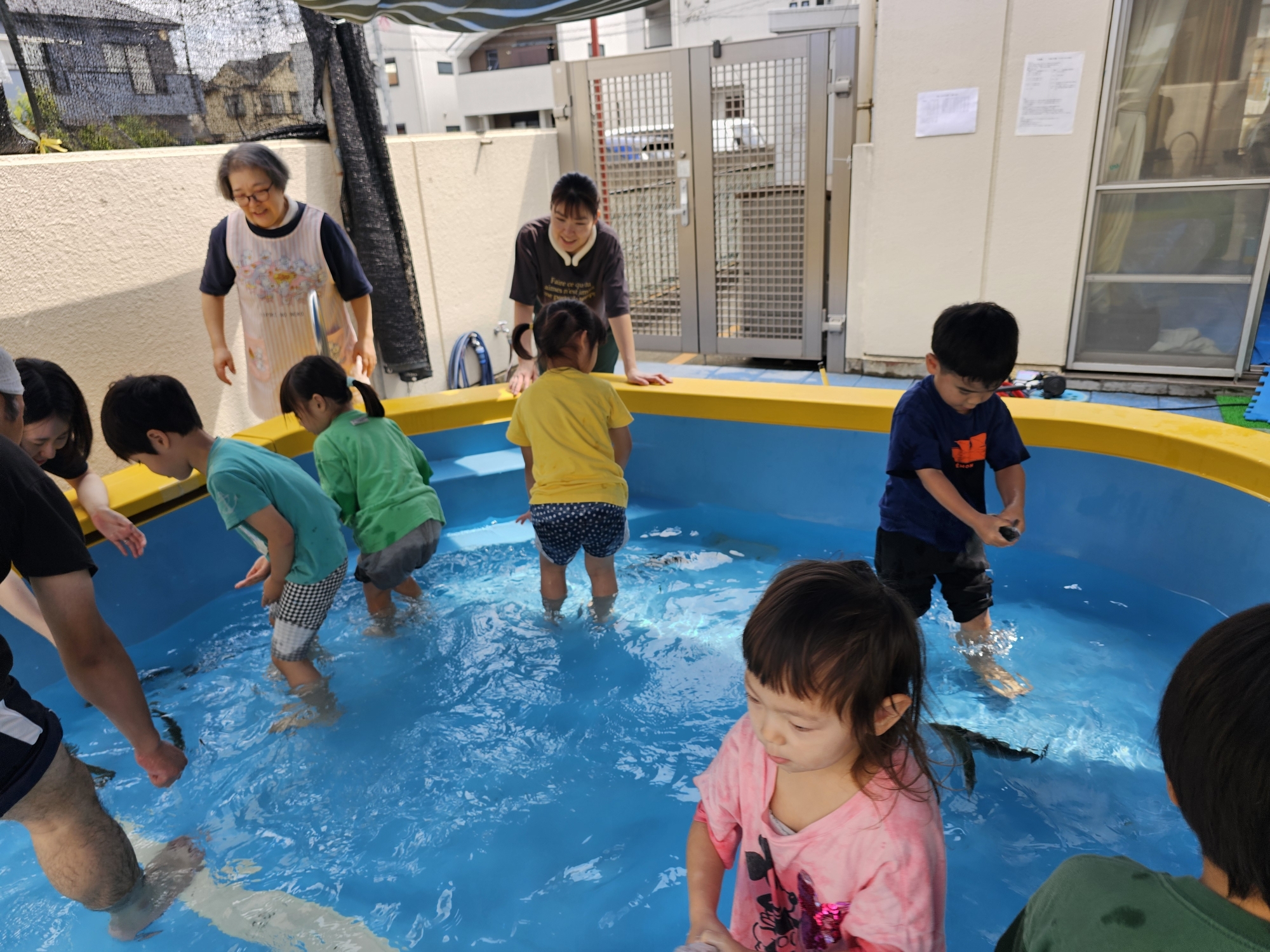 幼児組さんはプールでつかみどりをします。