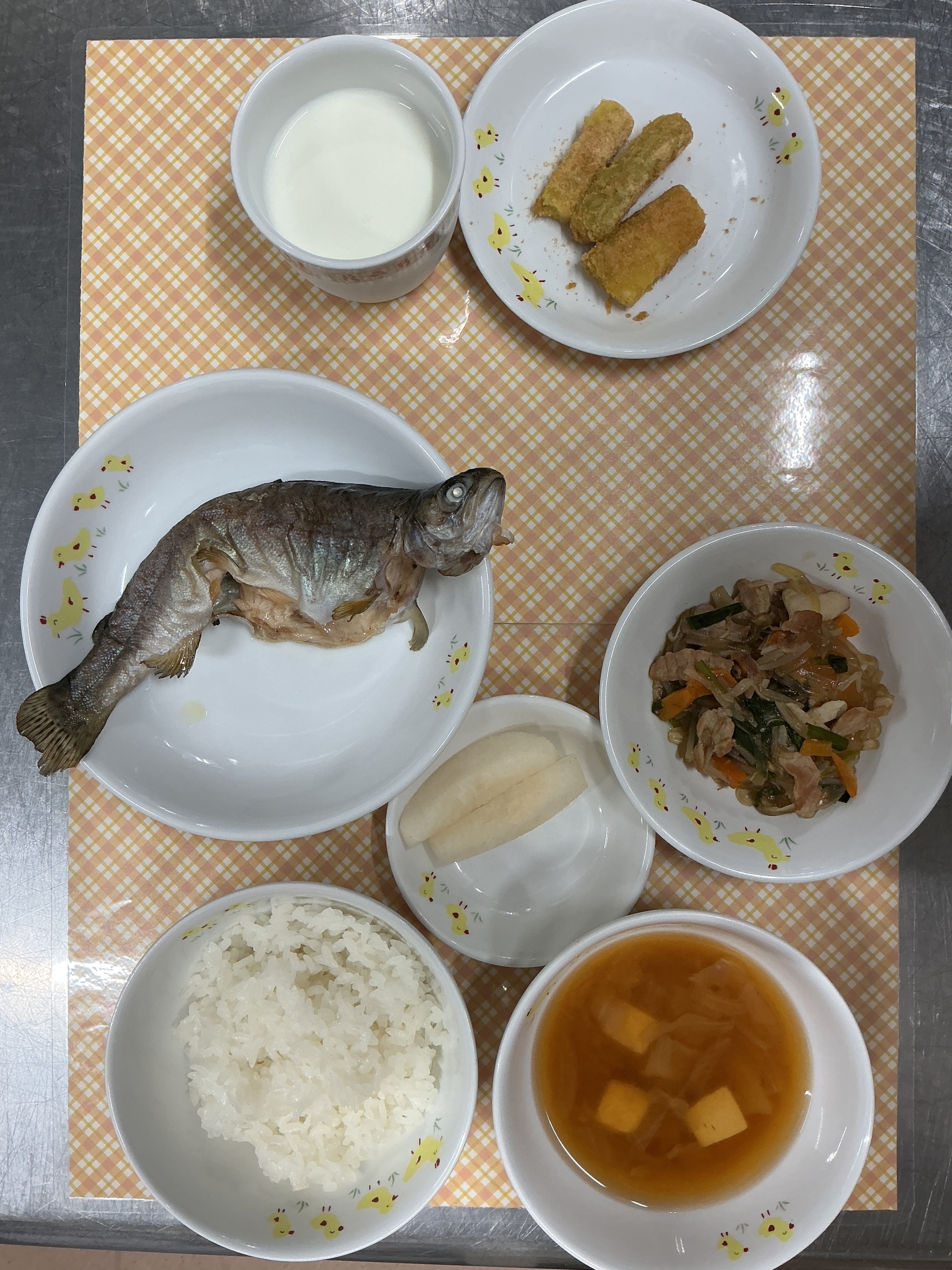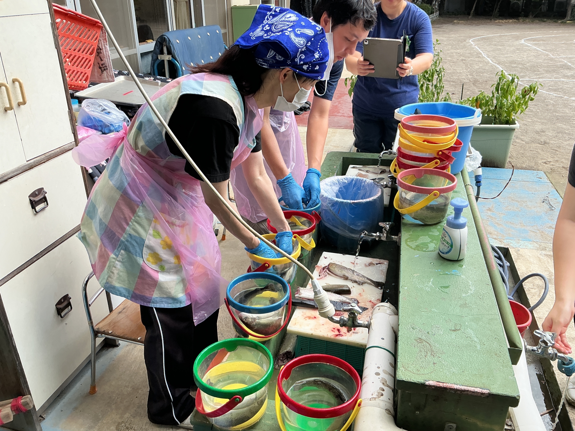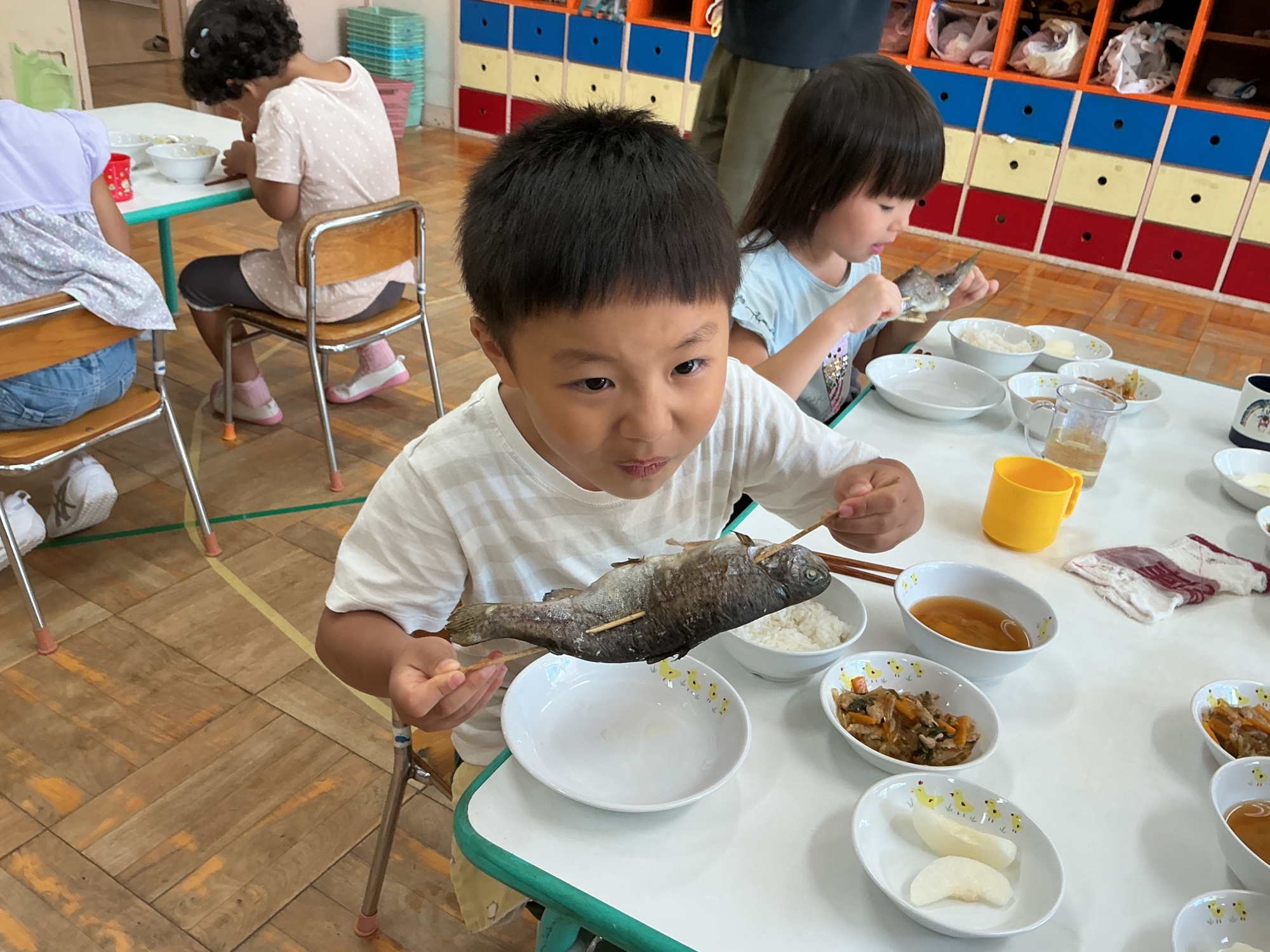 給食の先生に渡して、捌いてもらってお昼ご飯にして頂きます。