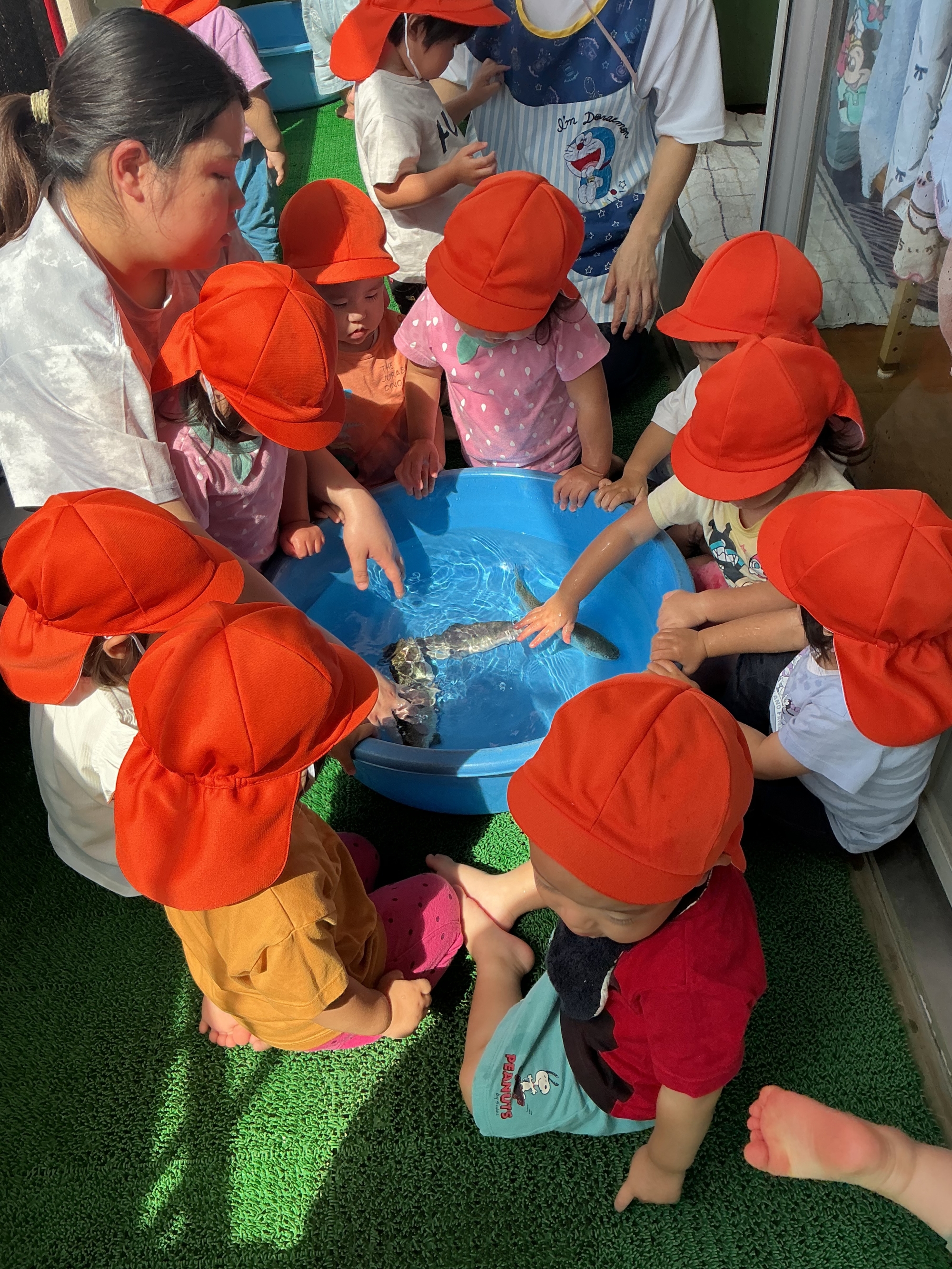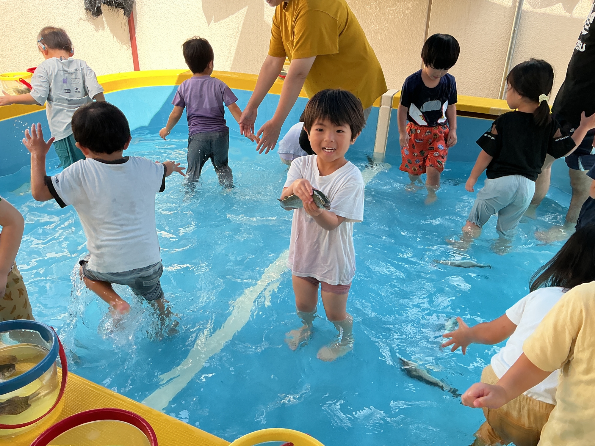 9月11日(木)にマスのつかみどりを保育園で行いました。