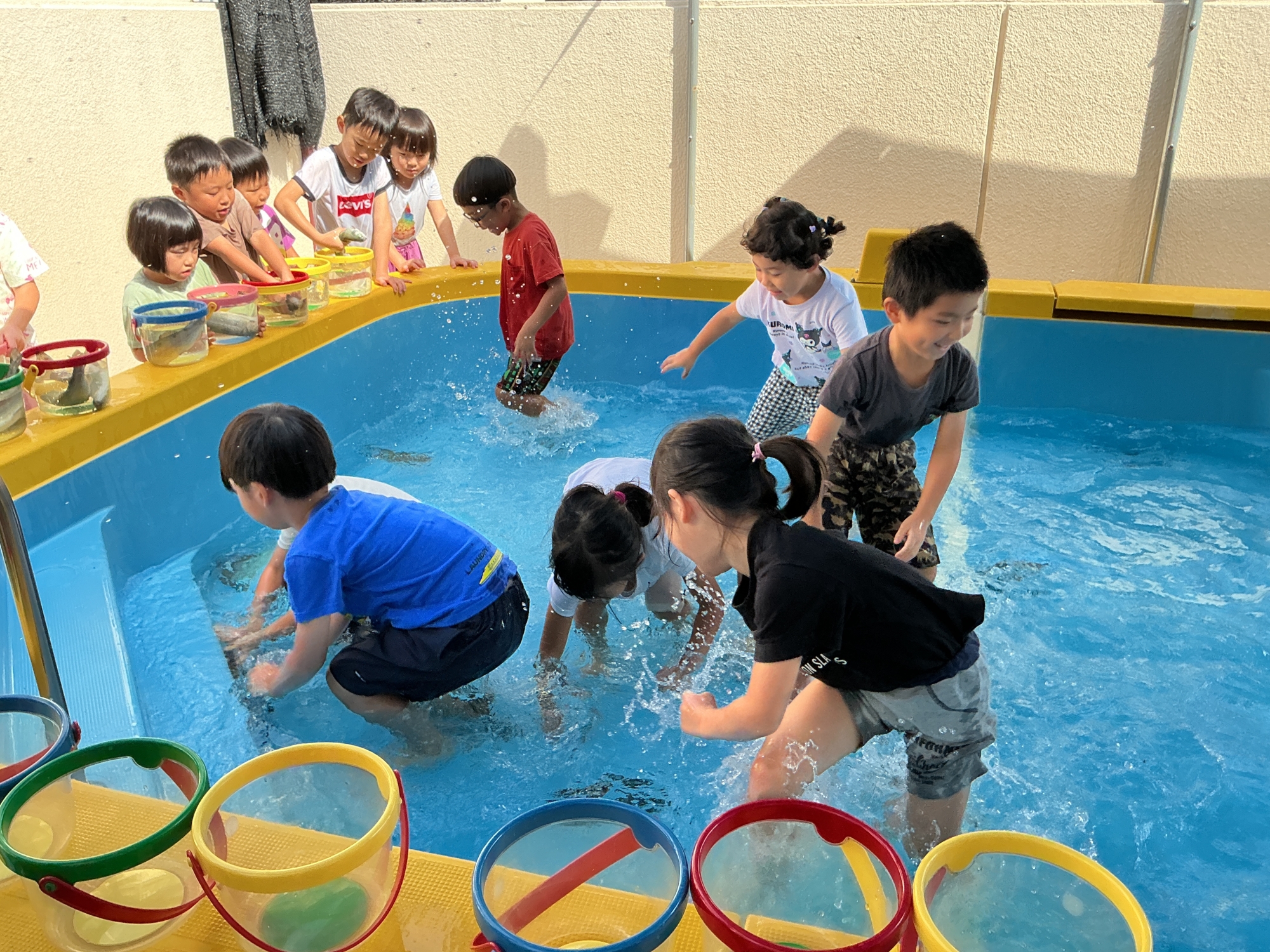 幼児組さんはプールでつかみどりをします。